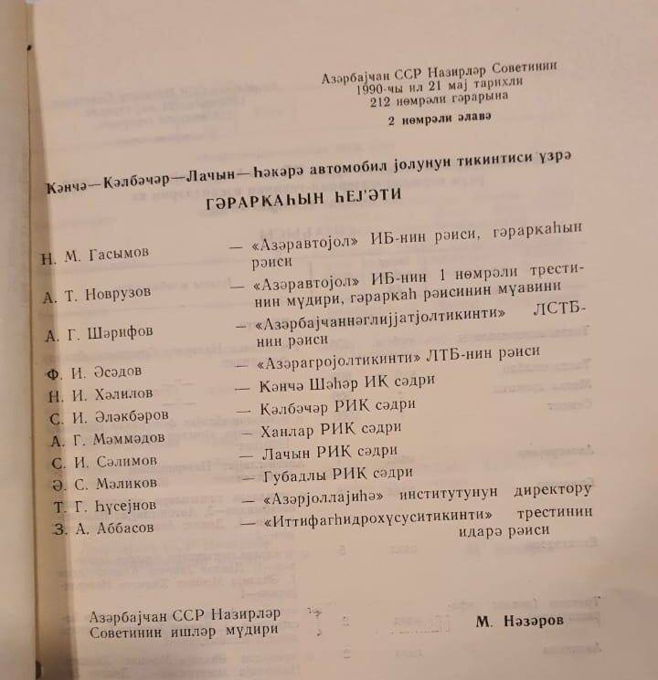 “O vaxt mən Kəlbəcər rayon İcraiyyə Komitəsinin sədri vəzifəsində işləyirdim. Biz Kəlbəcərdə həyata keçirilən kommunikasiya və infrastruktur proyektlərinin layihə-smeta sənədlərini hazırlayıb, hökumətə təqdim etmişdik. Həmin layihələrdən biri Murovdağın altından tunel tikintisi ilə bağlı idi. Murovun Göygöl istiqamətində “Turşsu” deyilən yerdən Kəlbəcərə doğru hər birinin uzunluğu 4,1 kilometr olan iki tunel tikilməli idi - biri Kəlbəcərə doğru, digəri əks istiqamətdə. Bu tunelin sayəsində Kəlbəcərlə Gəncə arasındakı məsafə təxminən 30-40 kilometr azalacaqdı. Tunelin tikintisində istifadə olunacaq avadanlıqları da Rusiyadan alıb gətirmişdik”.