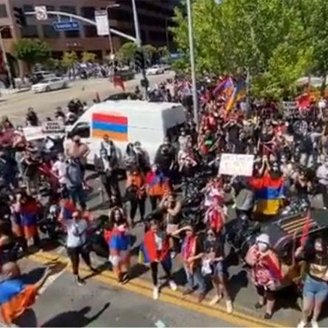 Amerikanın erməni vətəndaşları bildirirlər ki, onlar öz vətənləri əleyhinə yönəldilmiş hərbi əməliyyatlarla bağlı etirazlarını çatdırmaq üçün tədbir təşkil ediblər, amma Los-Anceles polis departamentində dinc nümayişin axıra qədər belə qalmadığı deyilir.