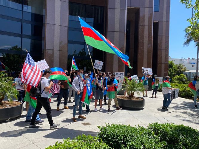 Los-Anceles şəhərindəki Baş Konsulluğumuzdan APA-nın aldığı məlumata görə, yerli Azərbaycan icmasının bir qrup üzvü Konsulluq yaxınlığında etiraz tədbiri keçirən minlərlə erməninin qarşısına çıxaraq, “Qarabağ Azərbaycandır!”, “Ermənistanın təcavüzünə son qoyun!”, “Xocalıya ədalət” şüarları səsləndiriblər. Onların cəsarətindən hiddətlənən erməni nümayişçiləri zorakılığa əl atıblar: idarə etdikləri avtomobillərdən azərbaycanlılara təhqirlər yağdırıblar, avtomobillərini həmyerlilərimizin üzərinə sürməyə çalışıblar.
