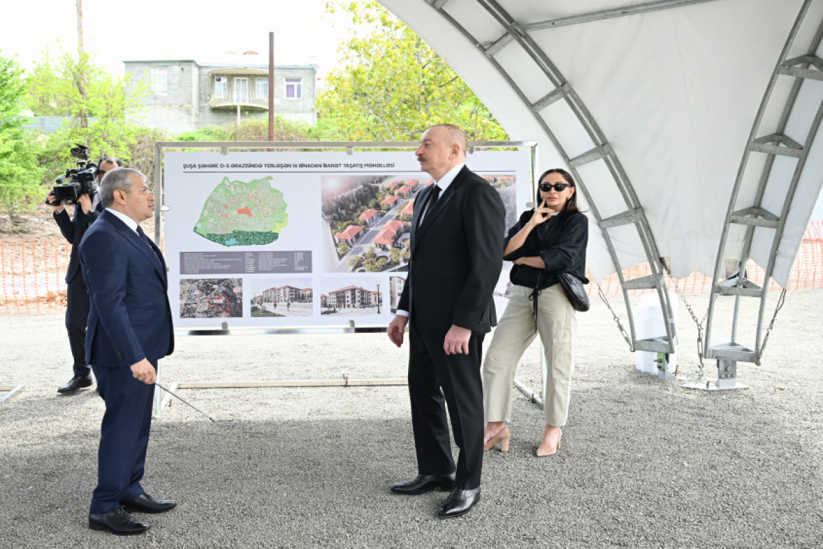 Prezidenti və birinci xanım  Şuşada inşa ediləcək dördüncü yaşayış kompleksinin təməlqoyma mərasimində də iştirak ediblər.
